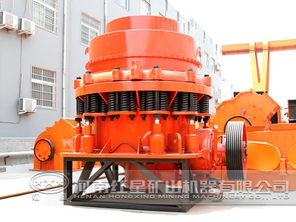 圆锥破原本有一个缺点,即可能由于物料过大是的排料停止,星辉牌圆锥破由于采用了“弹簧保险系统”,当有异物卡在排矿口使用清腔系统,使排矿继续增大,使异物排出圆锥破碎机破碎腔。