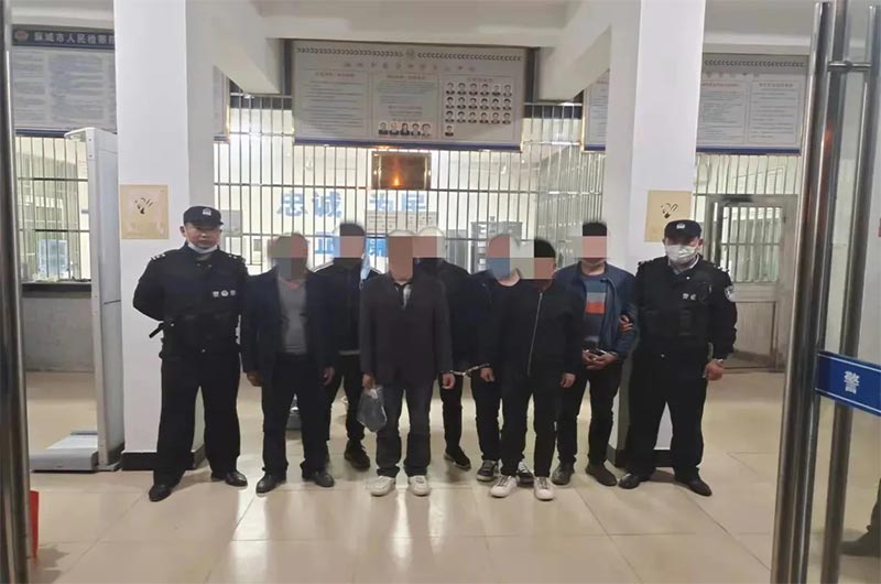 民警得知这一情况后,迅速成立专项调查组展开行动。通过调查取证,民警掌握了该采砂团伙的大量证据。2021年10月30日,麻城警方雷霆出击,成功抓获了以肖某为首的团伙成员共9人,现场扣押铲车两台,对讲机四部,一举将这个长期盘踞在新洲、铁门、歧亭、宋埠、中馆驿一带的盗砂犯罪团伙抓获。
