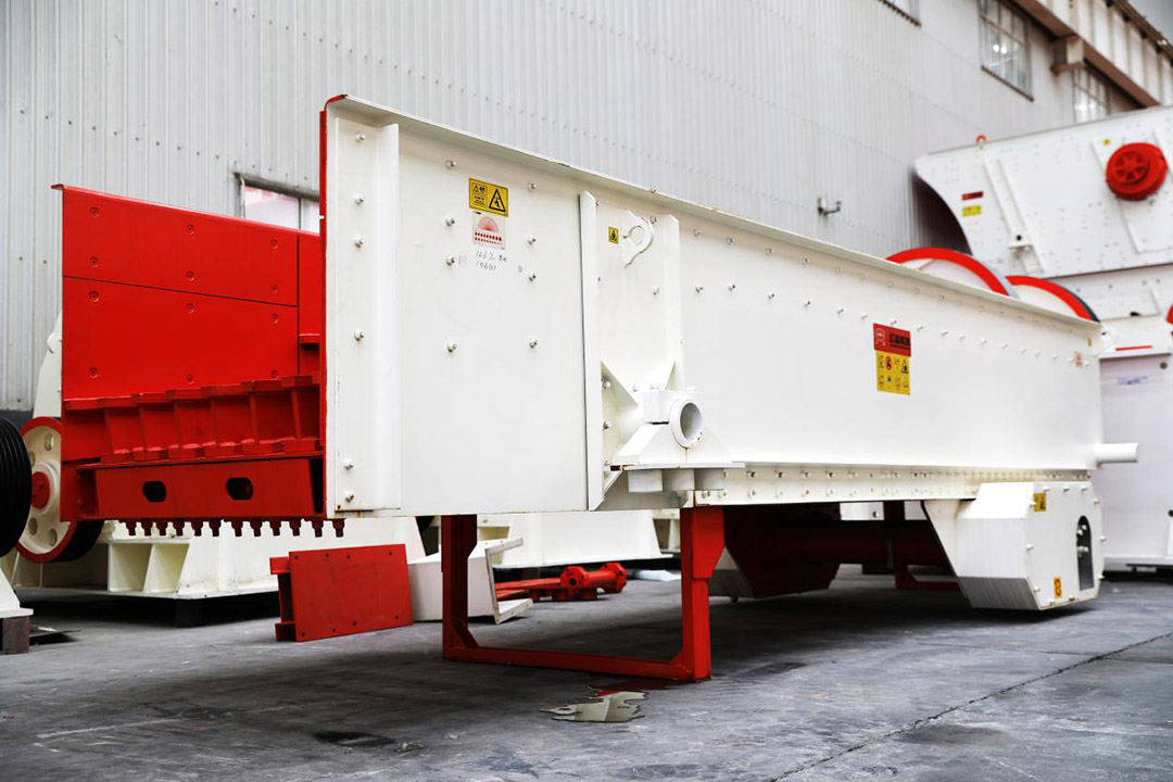 给料机是制砂生产线中的重要辅助设备,给料机一般放置在颚破前端,直接把物料送入颚破进行破碎。