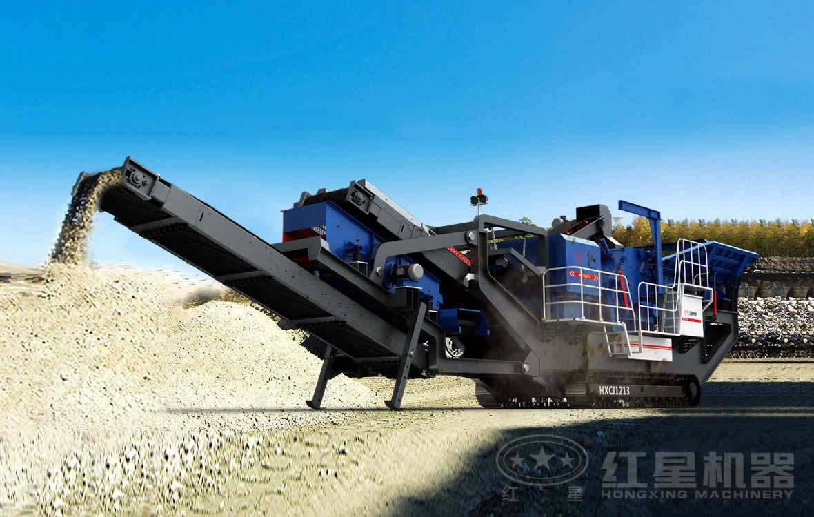 该生产线设备主要用来破碎大理石、铁矿石,服务于该国家公路网建设。这已经是星辉与该公司第三次合作,客户订购的第四条砂石骨料生产线即将安装调试。物料先送入颚破移动破碎站进行粗破,破碎后的物料经振动筛筛分进入反击破移动破碎站进行细碎,破碎后的成品由输送带输出。