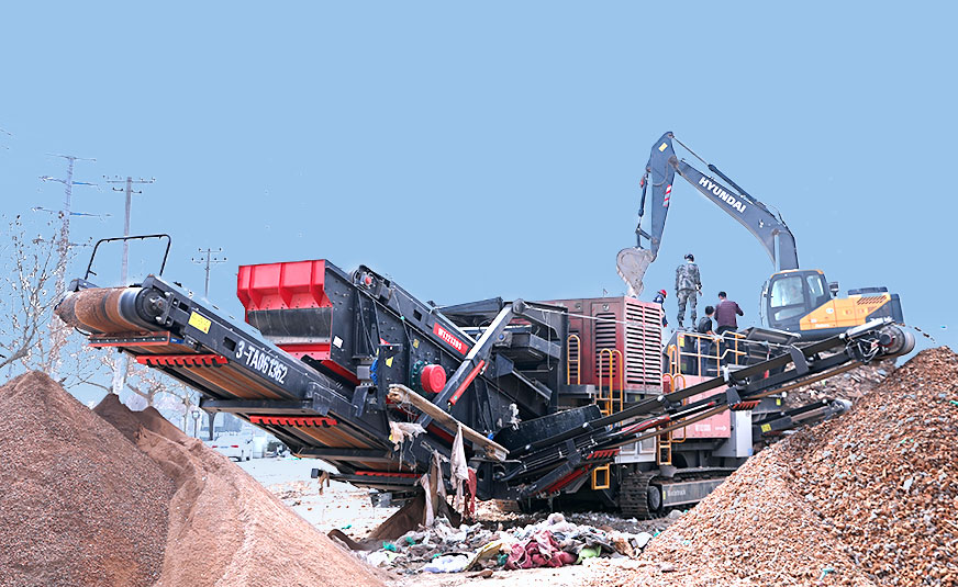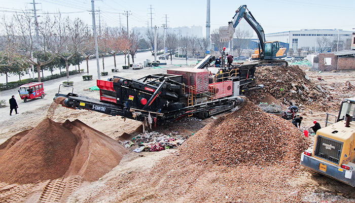 建筑垃圾有其自身的特点:材料多样,混杂堆放,硬度不一,还有较为重要的一点,分布分散,不便统一处理。要想从建筑垃圾中提取财富,需要破碎筛选等一系列步骤,并且由于建筑垃圾分布在不同的地方,破碎筛选等作业可以移动式进行。那么到哪找这些建筑垃圾处理设备呢?
