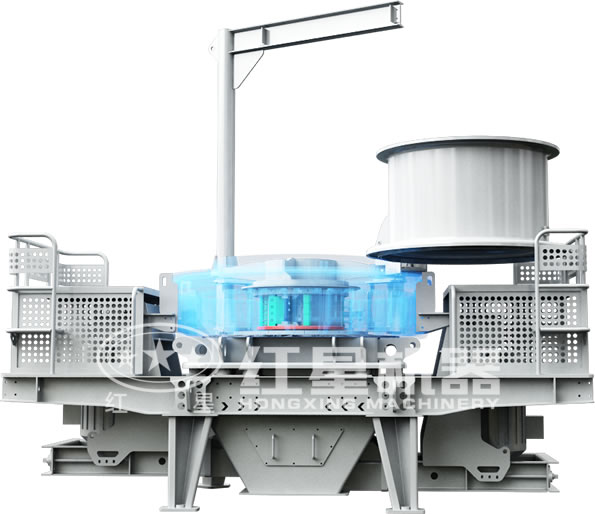 HX型立式冲击式破碎机由进料、分料器、涡动破碎腔、叶轮体验、主轴总成、底座传动装置及电机等七部分组成。