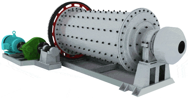本机为卧式筒形旋转装置,外沿齿轮传动,两仓,格子型球磨机。物料由进料装置经入料中空轴螺旋均匀地进入磨机一仓,该仓内有阶梯衬板或波纹衬板,内装不同规格钢球,筒体转动产生离心力将钢球带到一定高度后落下,对物料产生重击和研磨作用。物料在一仓达到粗磨后,经单层隔仓板进入第二仓,该仓内镶有平衬板,内有钢球,将物料进一步研磨。粉状物通过卸料箅板排出,完成粉磨作业。